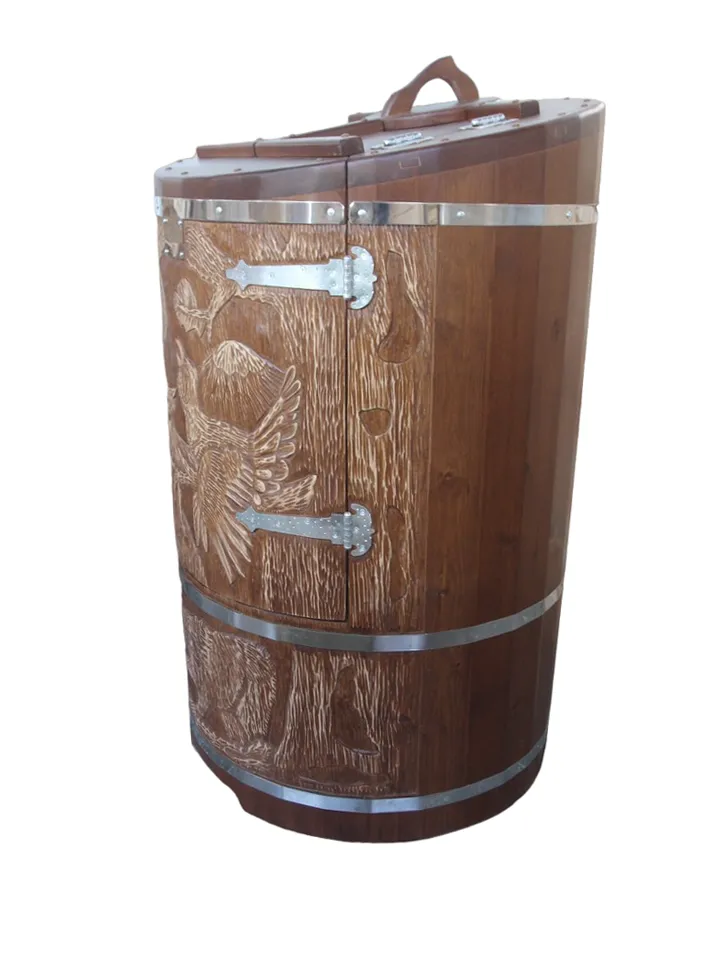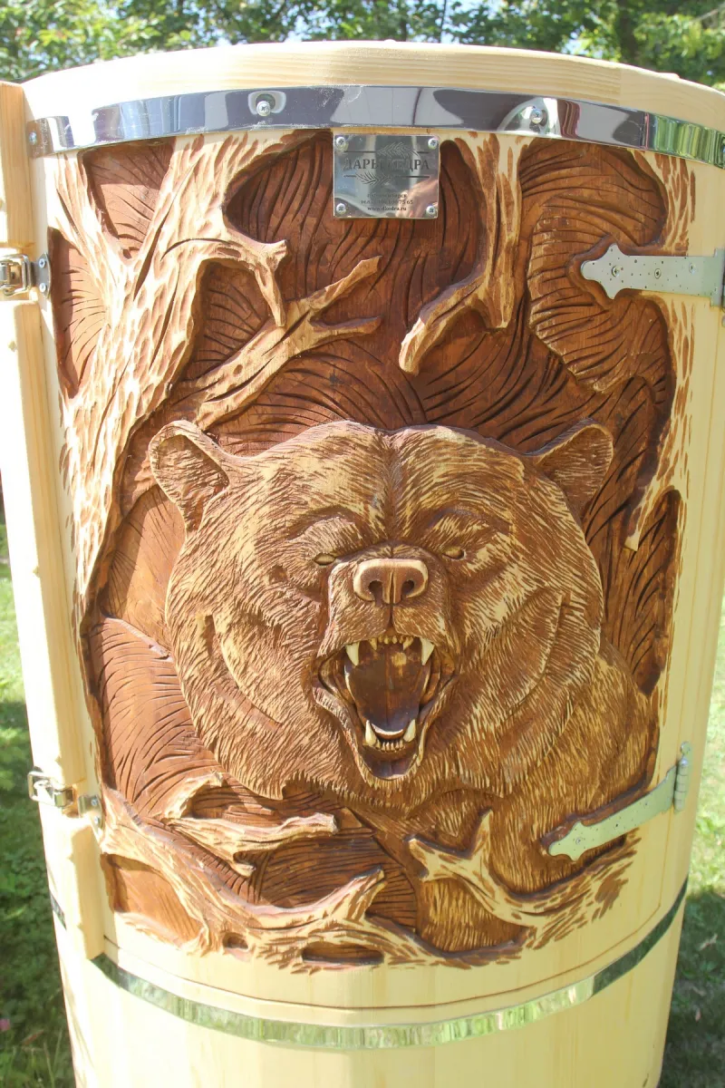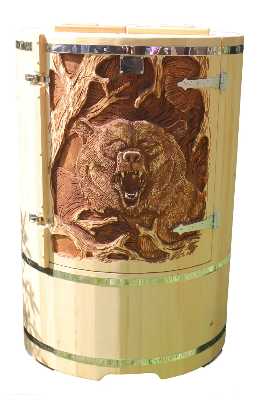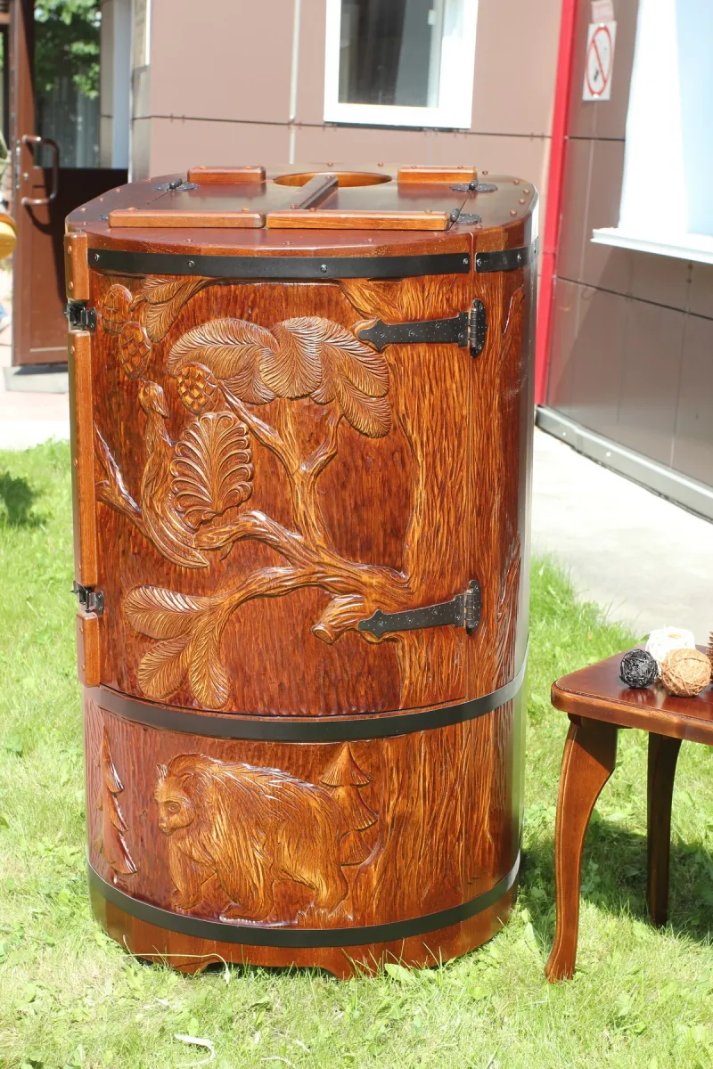 Готовый комплект - это полностью укомплектованный набор с полулежачей фитобочкой для процедур парения. Такая модель наиболее комфортна, так как позволяет принимать процедуры полулежа. Толщина стенок составляет 40-45 мм, что позволяет увеличить срок службы изделия. Фитобочка оборудована откидными створками, дверцей и отверстием для головы. Во время парения человек находится внутри кедровой бочки, а голова снаружи. Благодаря этому исключается возможность перегрева