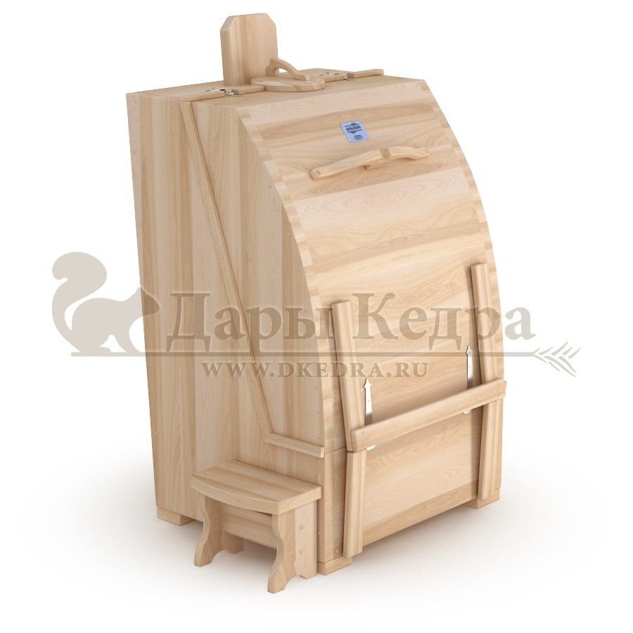 Кедровая бочка (фитобочка) полулежачая «Профессиональная» Кедровая фитобочка полулежачая - это мини парная, которую можно использовать не только в спа-салонах, но и дома. Модель этой бочки наиболее комфортна, так как позволяет принимать процедуры полулежа. Толщина стенок составляет 40-45 мм, что позволяет увеличить срок службы изделия. Фитобочка оборудована откидными створками, дверцей и отверстием для головы. Во время парения человек находится внутри кедровой бочки, а голова снаружи. Благодаря этому исключается возможность перегрева. Подлокотники, подспинник из кедра и внутренние ручки делают эксплуатацию фитобочки более удобной. Парение в фитобочке благотворно влияет на организм в целом: повышается иммунитет, выводятся шлаки и токсины, улучшается работа органов тела и состояние кожи.
