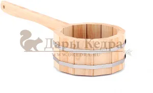 Деревянный ковш для бани из кедра это эффектный аксессуар. Он делает процессы парения и омовения тела более приятными и удобными. Вы удивитесь, но обычный деревянный черпак может служить не только для наполнения водой шаек или выплёскивания её на раскалённые камни – в сочетании с другими предметами, сделанными из природного материала, он формирует  в помещении неповторимый микроклимат.