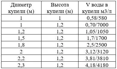 Как рассчитать объем круглой купели?